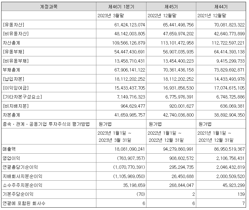 연결 요약 재무 정보 입니다. 자산 총계 109,566,126,879원 입니다. 부채 총계는 67,906,141,122원 입니다. 자본총계는 41,659,985,757원 입니다.